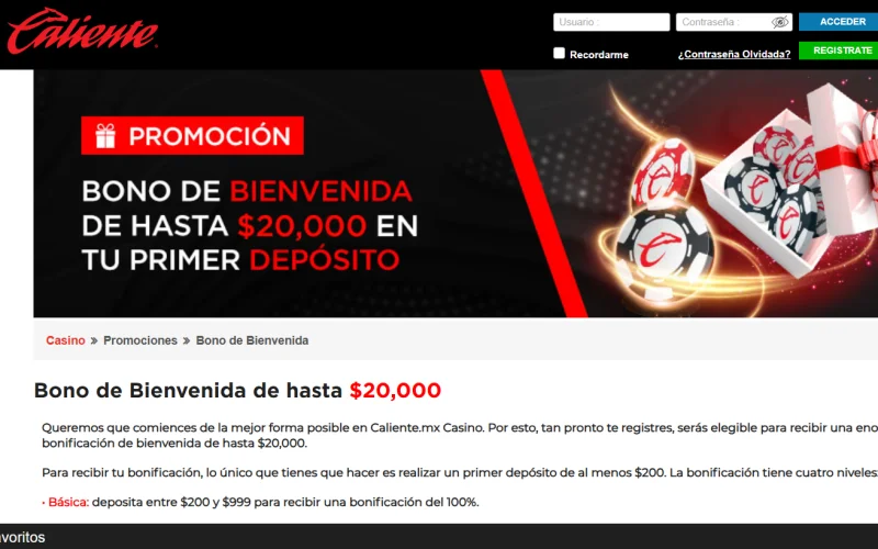Caliente casino bono de bienvenida