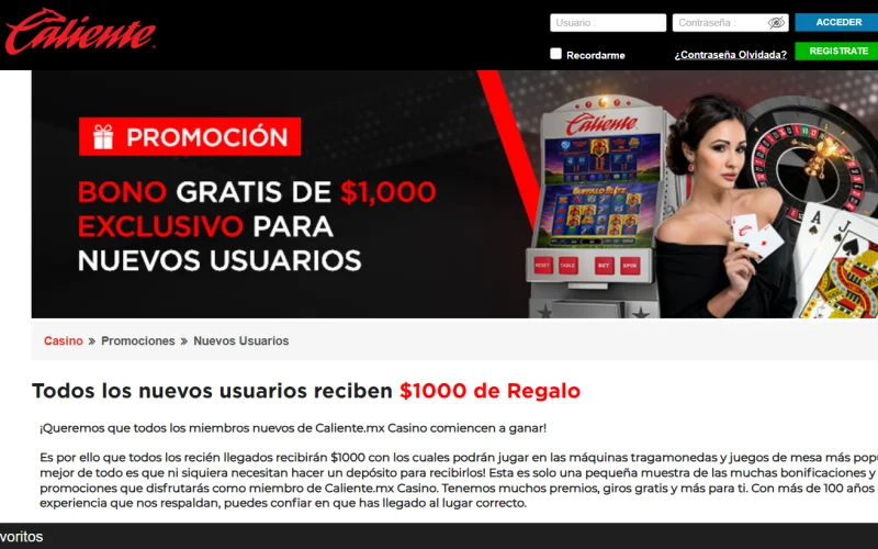 Caliente casino bono sin deposito